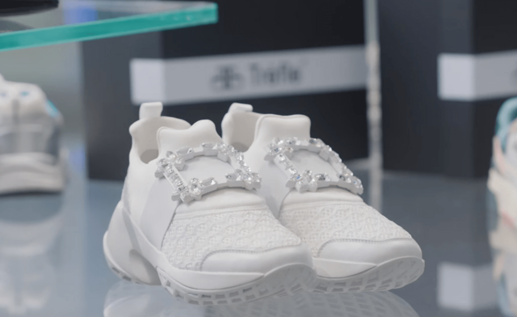 눈물의 여왕에서 김지원 운동화인 비브런 스니커즈는 브랜드의 특징인 시그니처 스트라스 버클과 청키힐이