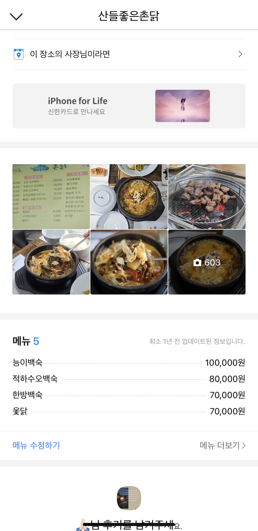 산들 좋은 촌닭 : 닭이 정말 맛있었어요. 깨끗하고 잡내 없는 , 저는 구이로 맛있게 먹었습니다.