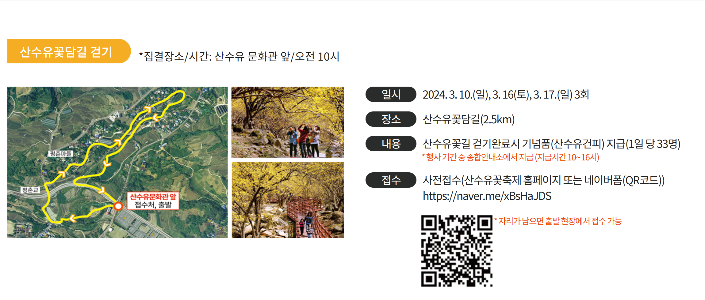다행히 축제 시작즈음에는 산수유가 만개할 예정이라고 하는데요.